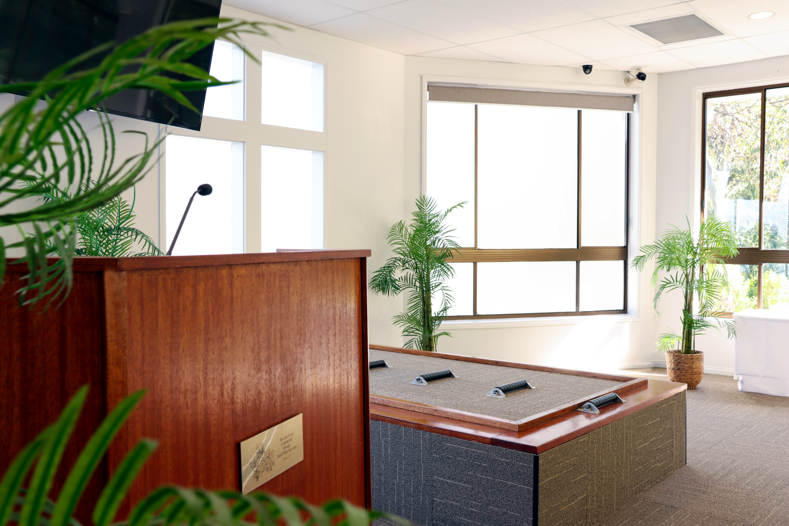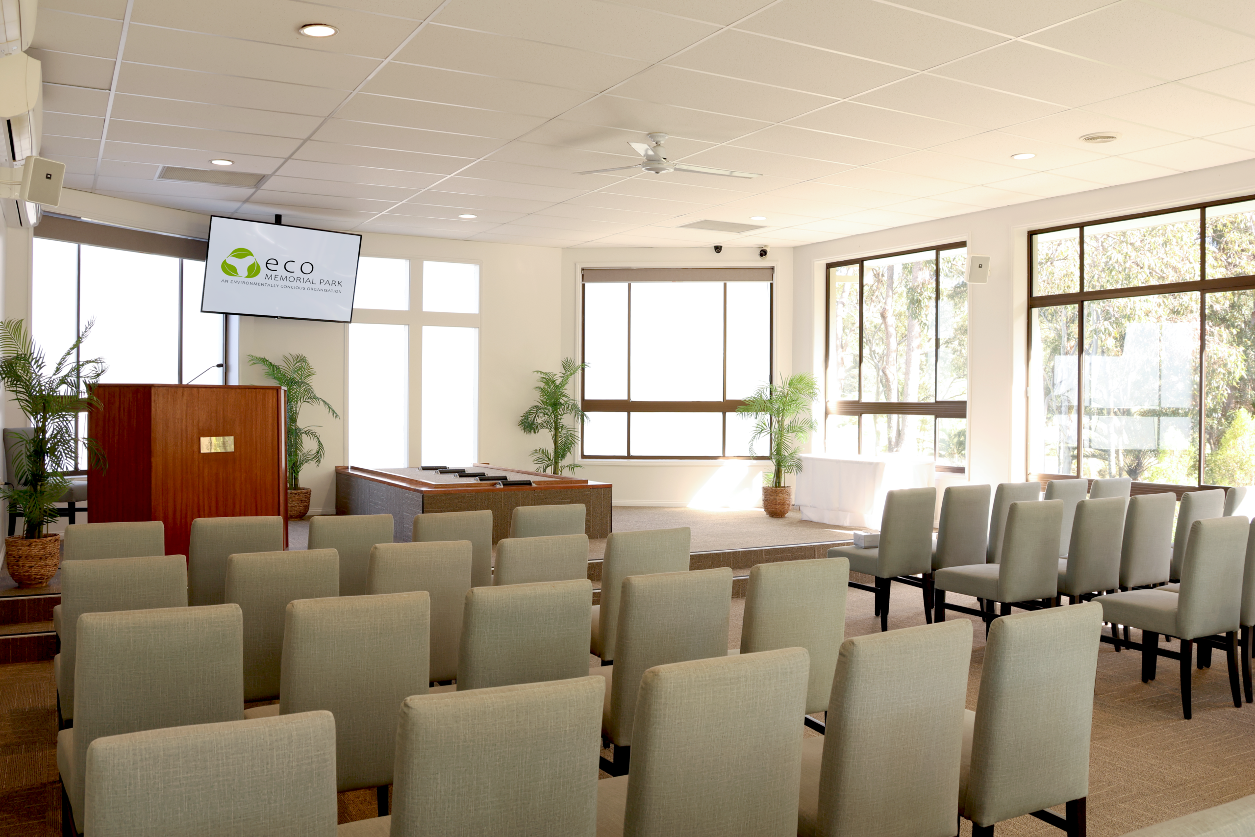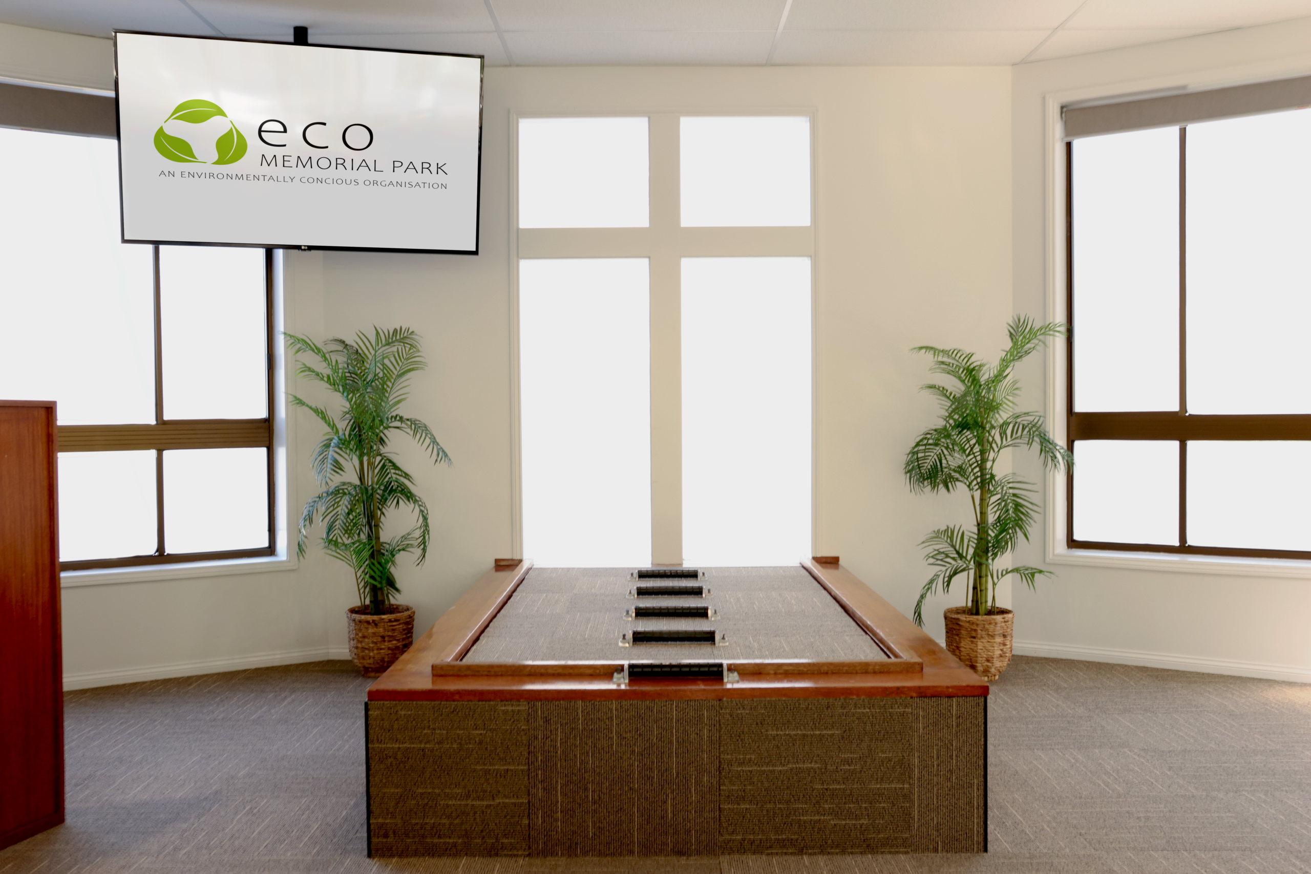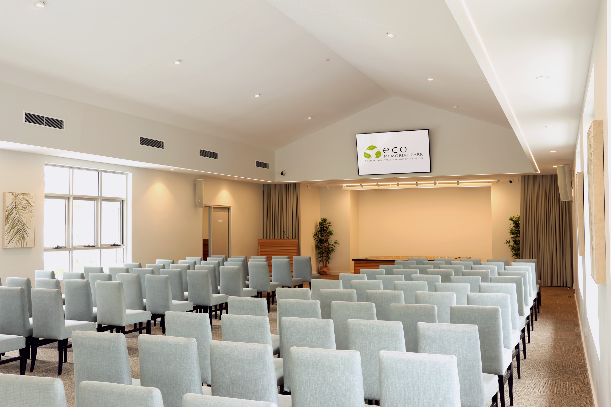 Eco Memorial Park offers modern chapels, an on-site function space for gatherings, and beautifully maintained gardens, providing peaceful, comfortable spaces for reflection, remembrance, and connection.